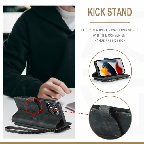 Premium Vegan leather Wallet Case for iPhone. This wallet case comes with multi card slots and inner compartment for cash and coins.